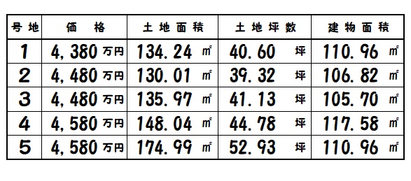 | 生駒市中菜畑2丁目 | 130.01㎡~/39.32坪~ | 5 | 105.70㎡~ | R8.6完成予定 | 4,380万円~ |