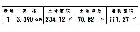 | 所在地 | 土地面積/坪数 | 総区画数 | 建物面積 | 建築年月 | 価格 |