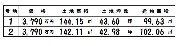| 生駒市中菜畑2丁目 | 142.11㎡~/42.98坪~ | 2 | 99.63㎡~ | R8.6完成予定 | 3,790万円 |