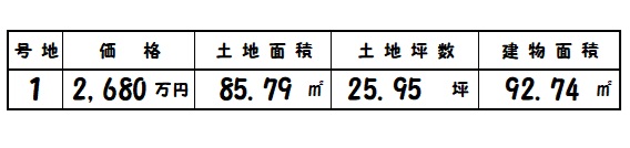 | 所在地 | 土地面積/坪数 | 総区画数 | 建物面積 | 建築年月 | 価格 |