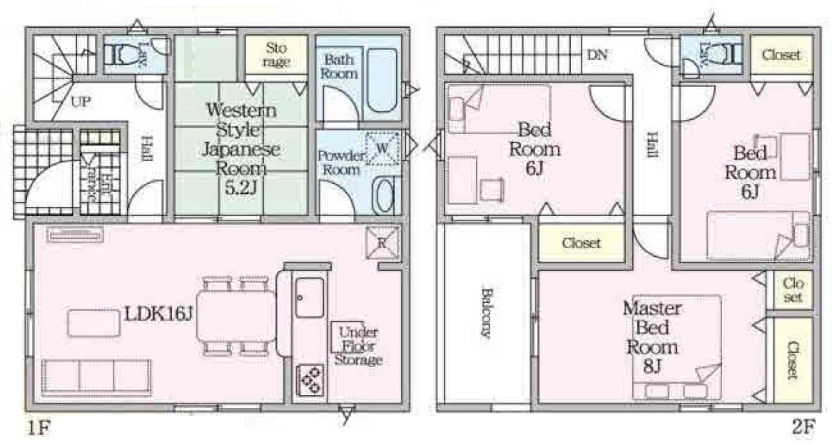 構造 木造軸組構法(在来工法) 階建て 2階建て 間取り詳細 洋3・和1・LDK1