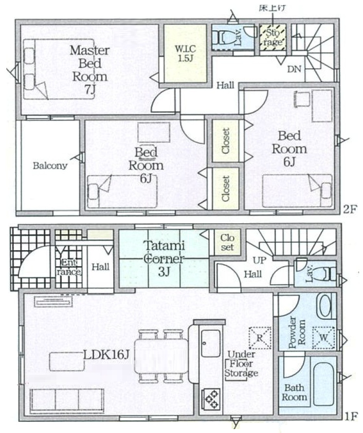 構造 木造軸組構法(在来工法) 階建て 2階建て 間取り詳細 洋3・和1・LDK1