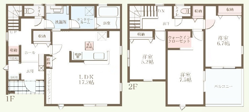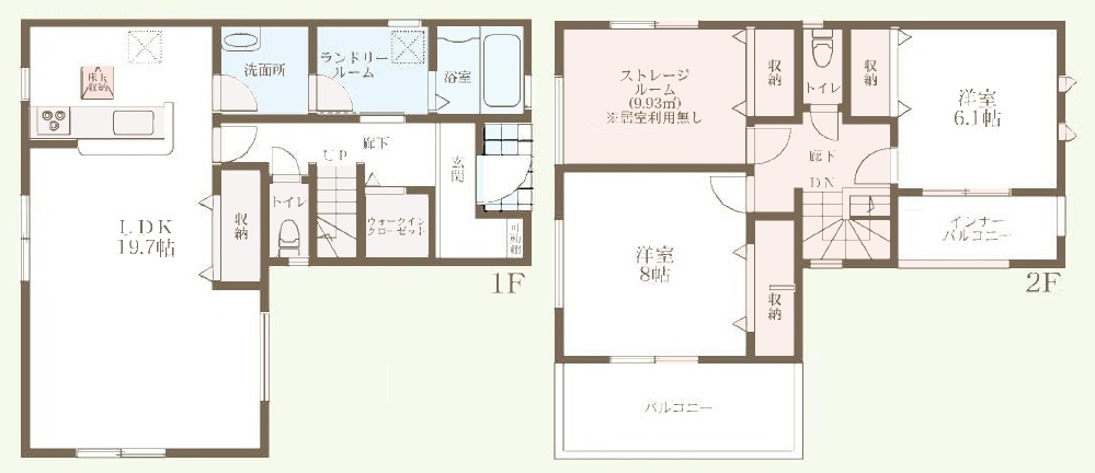 構造 木造軸組構法(在来工法) 階建て 2階建て 間取り詳細 洋3・LDK1
