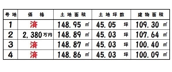 | 所在地 | 土地面積/坪数 | 総区画数 | 建物面積 | 建築年月 | 価格 |