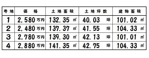 | 所在地 | 土地面積/坪数 | 総区画数 | 建物面積 | 建築年月 | 価格 |