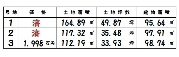 | 所在地 | 土地面積/坪数 | 総区画数 | 建物面積 | 建築年月 | 価格 |