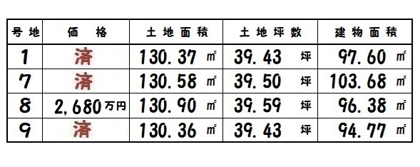 | 奈良市杏町 | 130.36㎡~/39.43坪~ | 4 | 94.77㎡~ | R7.9 | 2,680万円 |