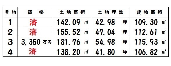 | 天理市田井庄町 | 138.20㎡~/41.80坪~ | 4 | 106.82㎡~ | R7.10完成 | 3,350万円 |