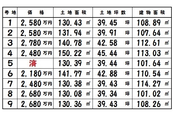 | 所在地 | 土地面積/坪数 | 総区画数 | 建物面積 | 建築年月 | 価格 |