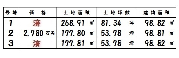 大和郡山市池之内町 177.80㎡~/53.78坪~ 3 98.81㎡~ R7.11 2,780万円