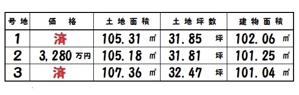 | 大和郡山市北郡山 | 105.18㎡~/31.81坪~ | 3 | 101.04㎡~ | R8.2完成予定 | 3,280万円 |