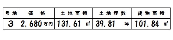 | 所在地 | 土地面積/坪数 | 総区画数 | 建物面積 | 建築年月 | 価格 |