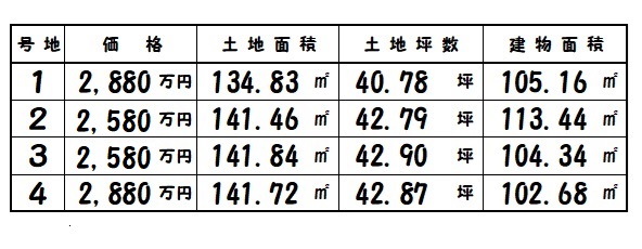 | 桜井市粟殿 | 134.83㎡~/40.78坪~ | 4 | 102.68㎡~ | R7.11完成 | 2,580万円~ |