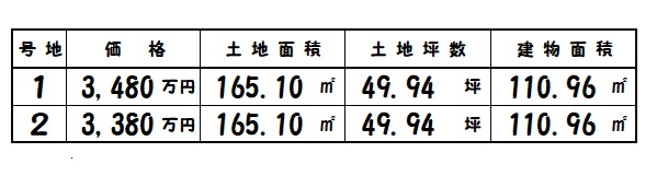 | 所在地 | 土地面積/坪数 | 総区画数 | 建物面積 | 建築年月 | 価格 |