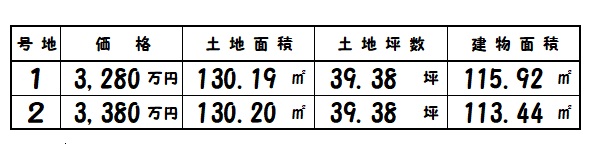 | 所在地 | 土地面積/坪数 | 総区画数 | 建物面積 | 建築年月 | 価格 |