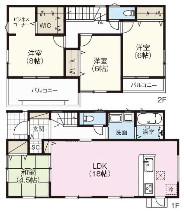 構造 木造軸組構法(在来工法) 階建て 2階建て 間取り詳細 洋3・和1・LDK1