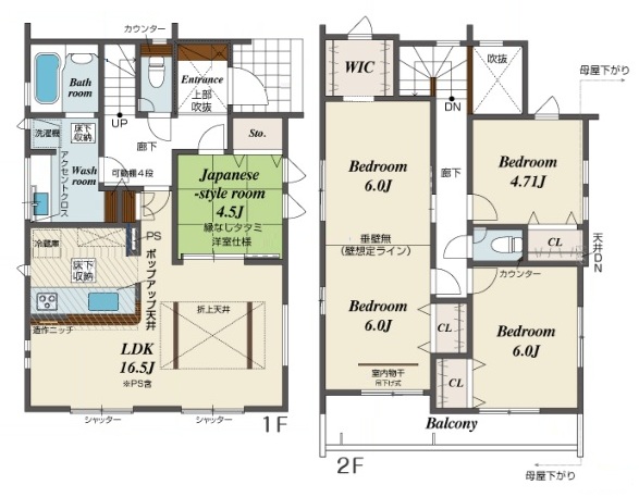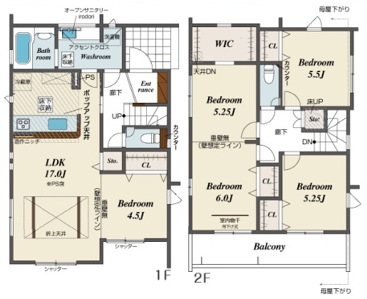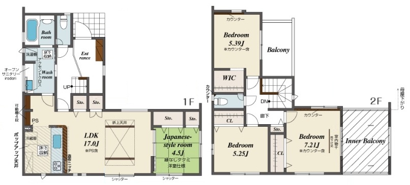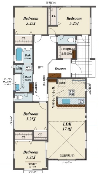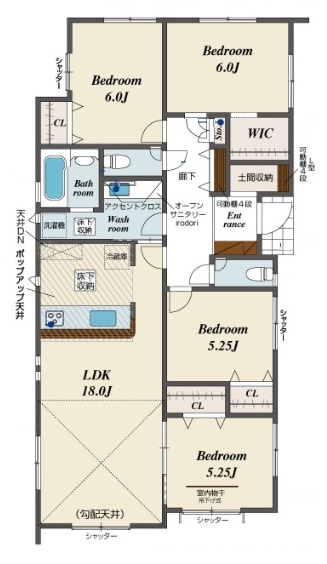 構造 木造軸組構法(在来工法) 階建て 2階建て 間取り詳細 洋4・LDK1