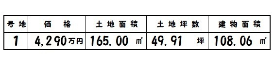| 所在地 | 土地面積/坪数 | 総区画数 | 建物面積 | 建築年月 | 価格 |