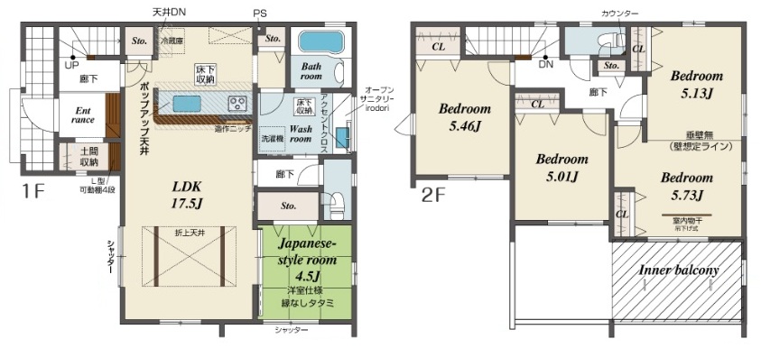 | 構造 | 木造軸組構法(在来工法) | 階建て | 2階建て | 間取り詳細 | 洋4・LDK1 |
