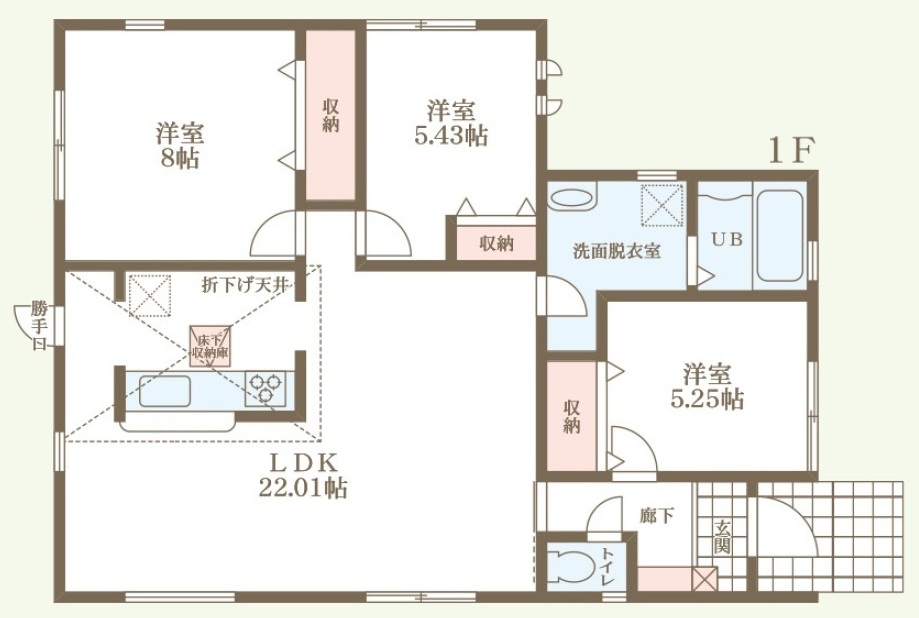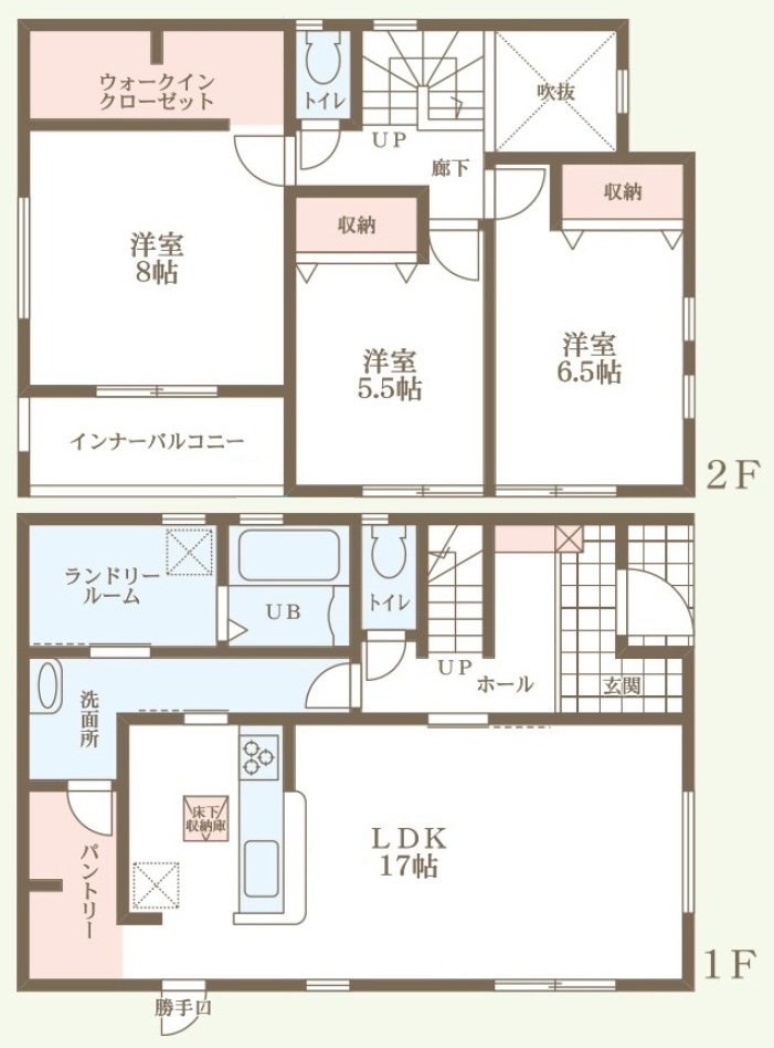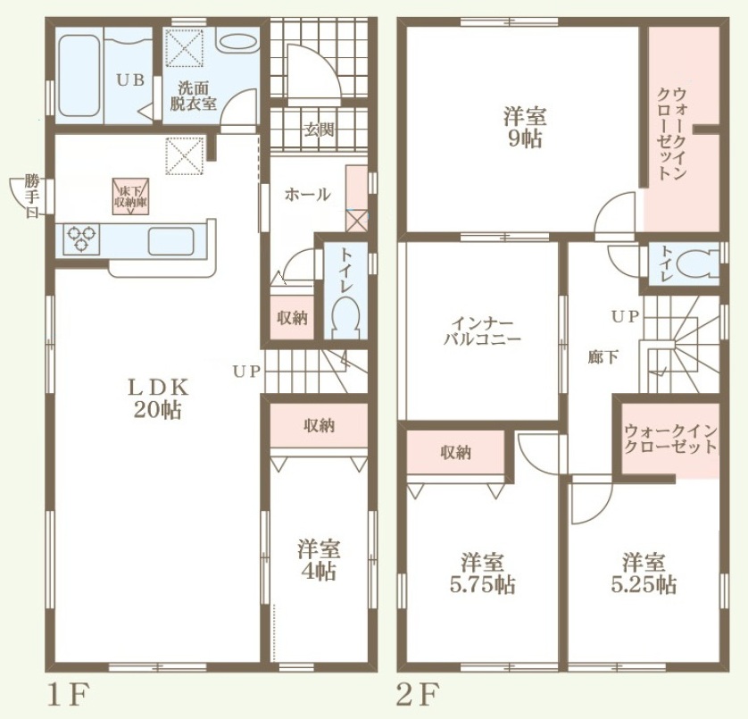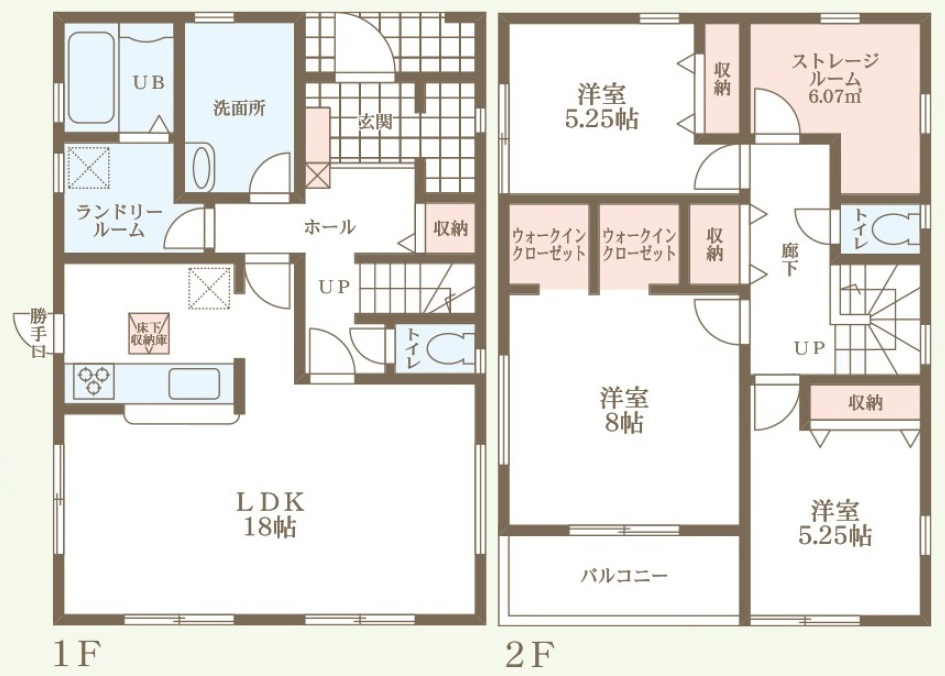 構造 木造軸組構法(在来工法) 階建て 2階建て 間取り詳細 洋3・LDK1