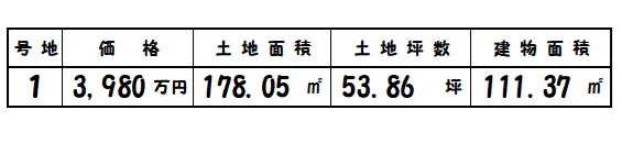 | 所在地 | 土地面積/坪数 | 総区画数 | 建物面積 | 建築年月 | 価格 |