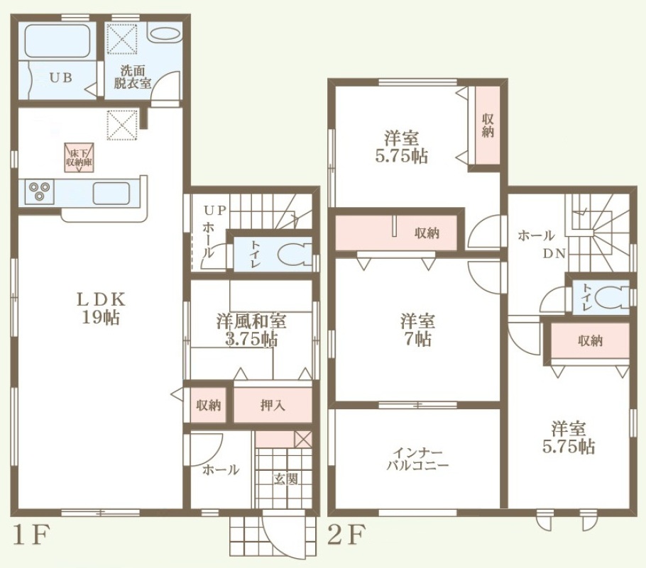 構造 木造軸組構法(在来工法) 階建て 2階建て 間取り詳細 洋3・和1・LDK1