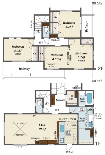 構造 木造軸組構法(在来工法) 階建て 2階建て 間取り詳細 洋4・LDK1