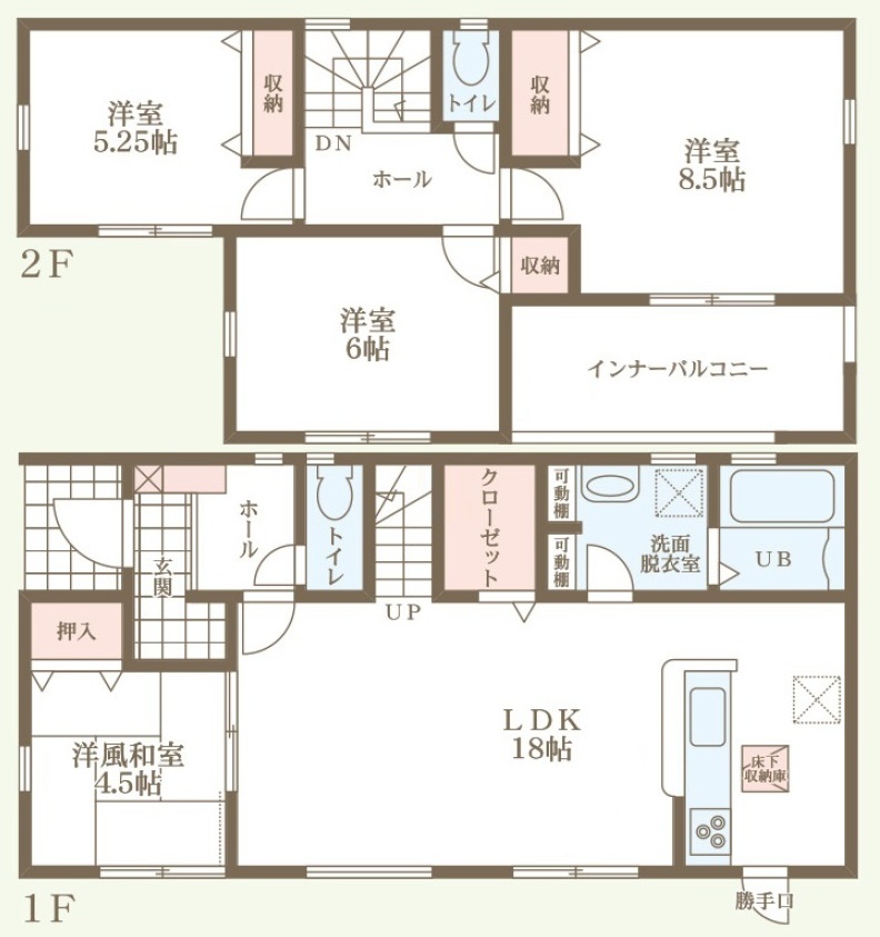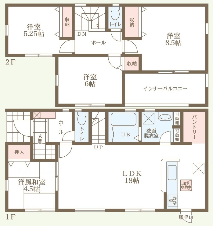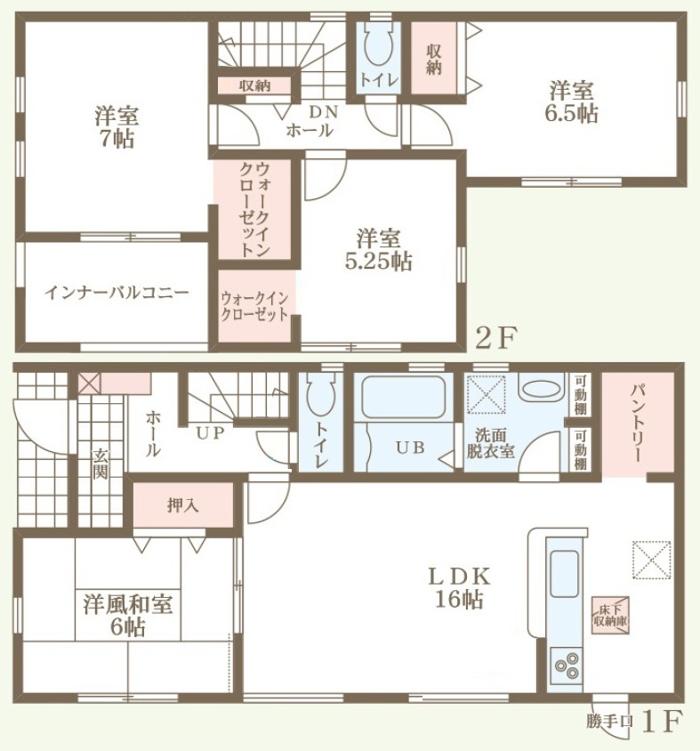 構造 木造軸組構法(在来工法) 階建て 2階建て 間取り詳細 洋3・和1・LDK1