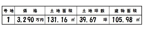 | 所在地 | 土地面積/坪数 | 総区画数 | 建物面積 | 建築年月 | 価格 |