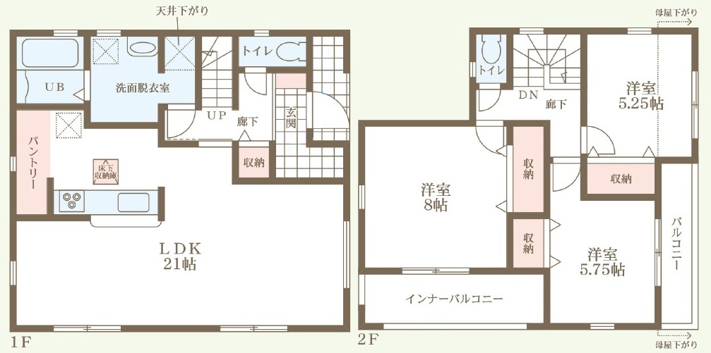 構造 木造軸組構法(在来工法) 階建て 2階建て 間取り詳細 洋3・LDK1