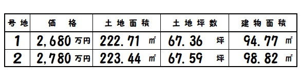 | 所在地 | 土地面積/坪数 | 総区画数 | 建物面積 | 建築年月 | 価格 |