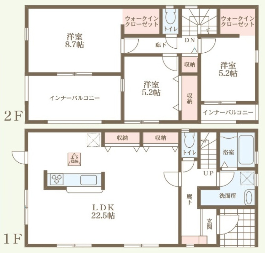 | 構造 | 木造軸組構法(在来工法) | 階建て | 2階建て | 間取り詳細 | 洋3・和1・LDK1 |