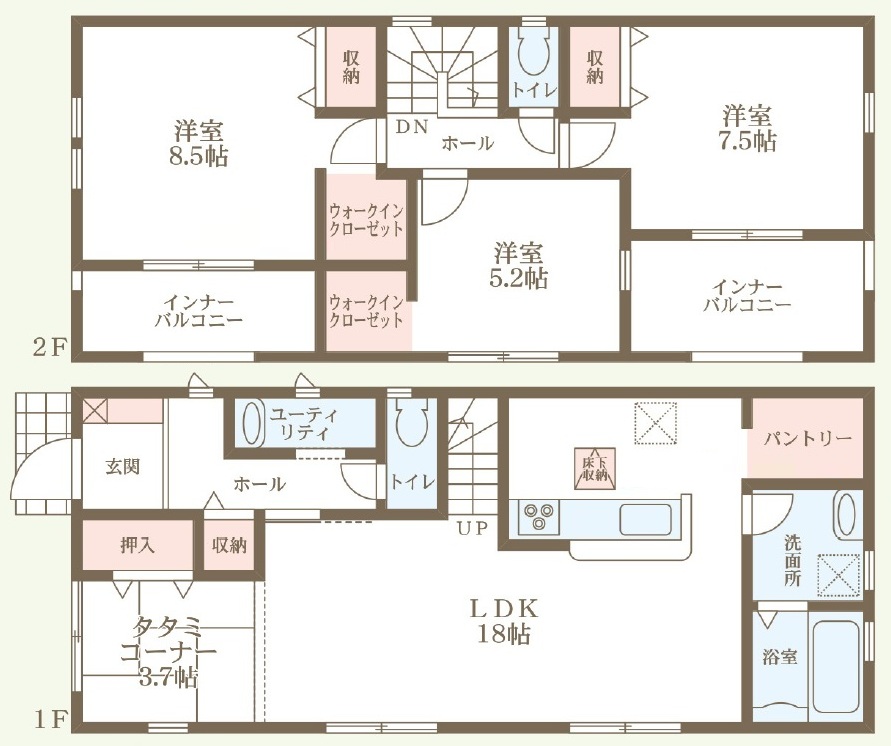| 構造 | 木造軸組構法(在来工法) | 階建て | 2階建て | 間取り詳細 | 洋3・和1・LDK1 |