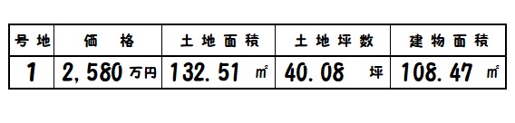 | 所在地 | 土地面積/坪数 | 総区画数 | 建物面積 | 建築年月 | 価格 |