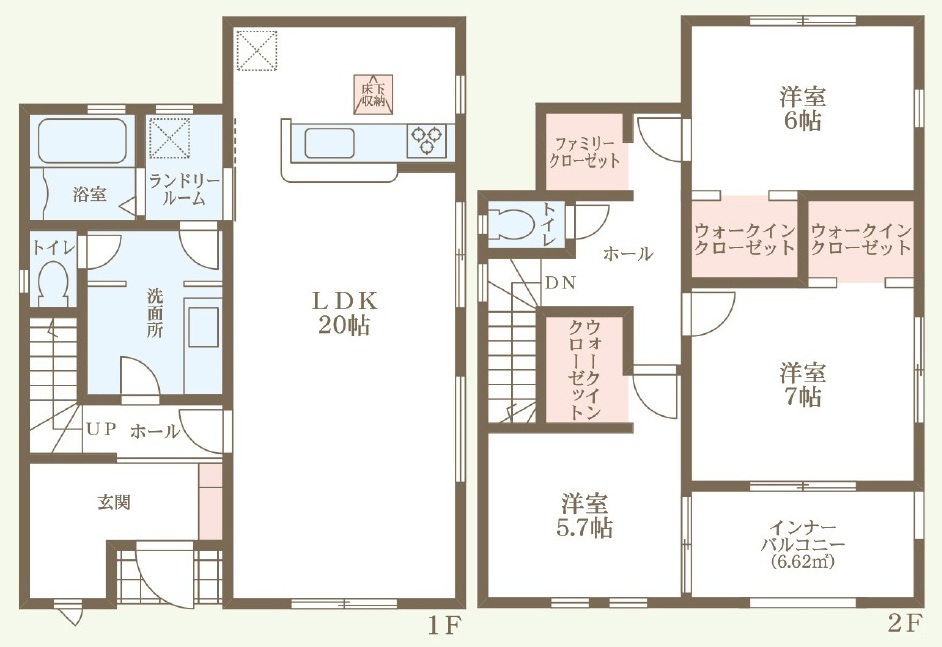 構造 木造軸組構法(在来工法) 階建て 2階建て 間取り詳細 洋3・LDK1