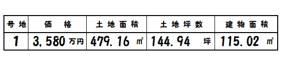 | 所在地 | 土地面積/坪数 | 総区画数 | 建物面積 | 建築年月 | 価格 |