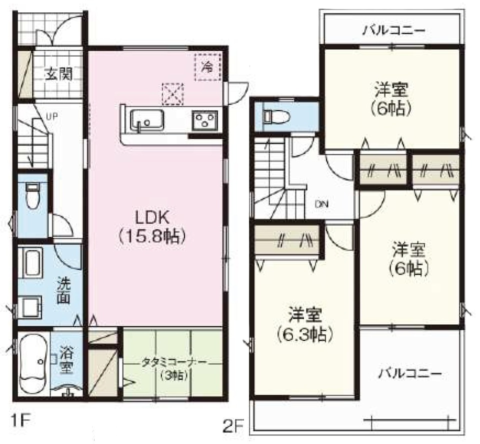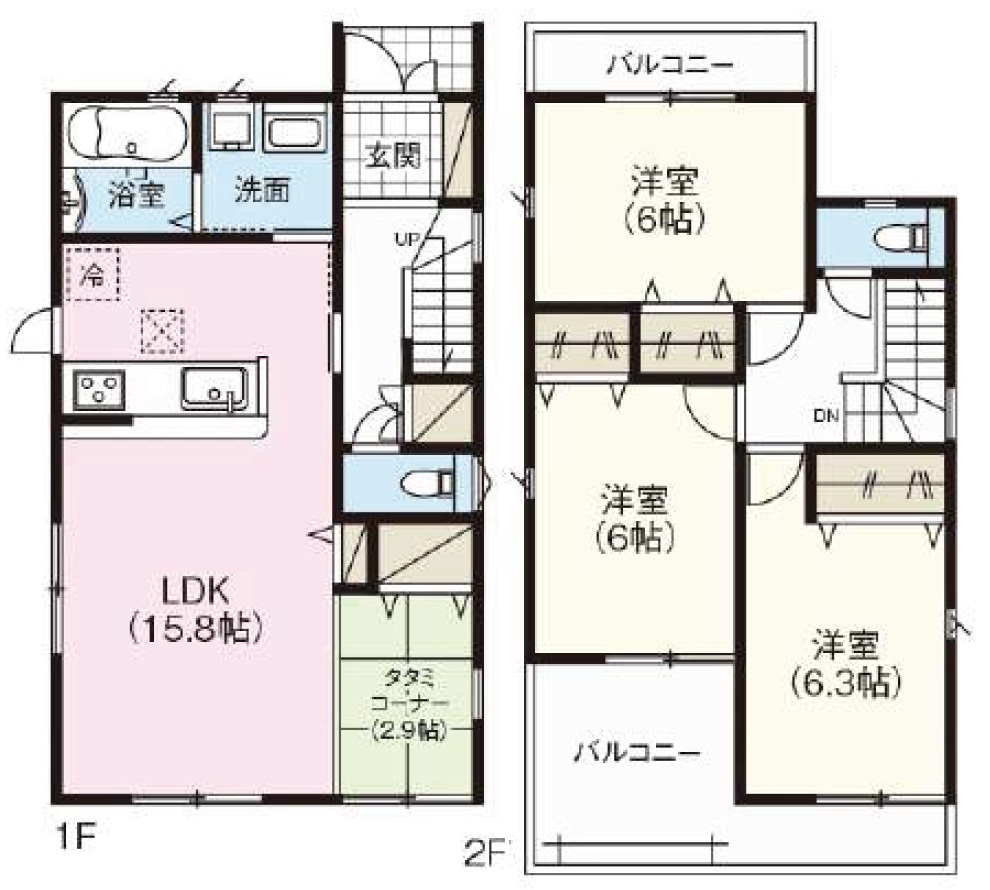 | 構造 | 木造軸組構法(在来工法) | 階建て | 2階建て | 間取り詳細 | 洋3・LDK1 |