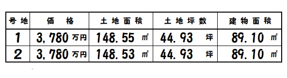 | 所在地 | 土地面積/坪数 | 総区画数 | 建物面積 | 建築年月 | 価格 |