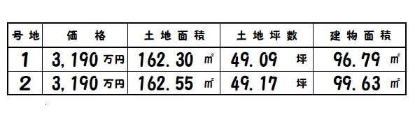 | 斑鳩町目安北1丁目 | 162.30㎡~/49.09坪~ | 2 | 96.79㎡~ | R8.5完成予定 | 3,190万円 |