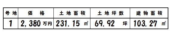 | 所在地 | 土地面積/坪数 | 総区画数 | 建物面積 | 建築年月 | 価格 |