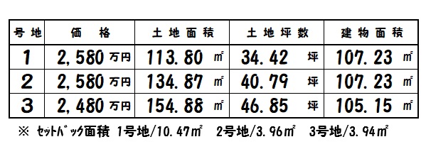 | 所在地 | 土地面積/坪数 | 総区画数 | 建物面積 | 建築年月 | 価格 |