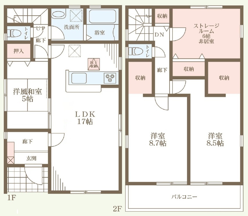 | 構造 | 木造軸組構法(在来工法) | 階建て | 2階建て | 間取り詳細 | 洋3・LDK1 |