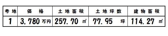 | 所在地 | 土地面積/坪数 | 総区画数 | 建物面積 | 建築年月 | 価格 |