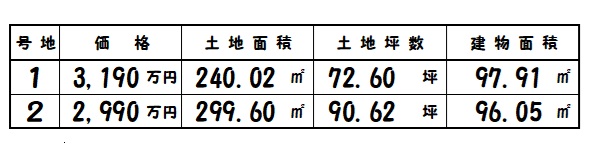 | 所在地 | 土地面積/坪数 | 総区画数 | 建物面積 | 建築年月 | 価格 |