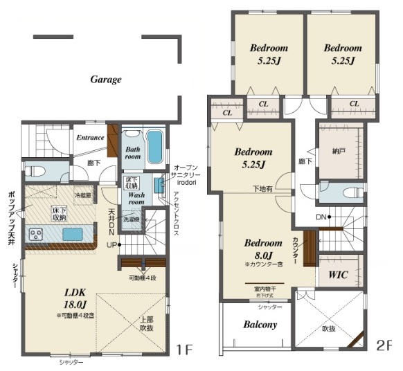 | 構造 | 木造軸組構法(在来工法) | 階建て | 2階建て | 間取り詳細 | 洋4・LDK1 |
