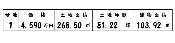 | 所在地 | 土地面積/坪数 | 総区画数 | 建物面積 | 建築年月 | 価格 |