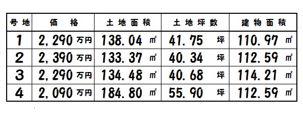 | 所在地 | 土地面積/坪数 | 総区画数 | 建物面積 | 建築年月 | 価格 |