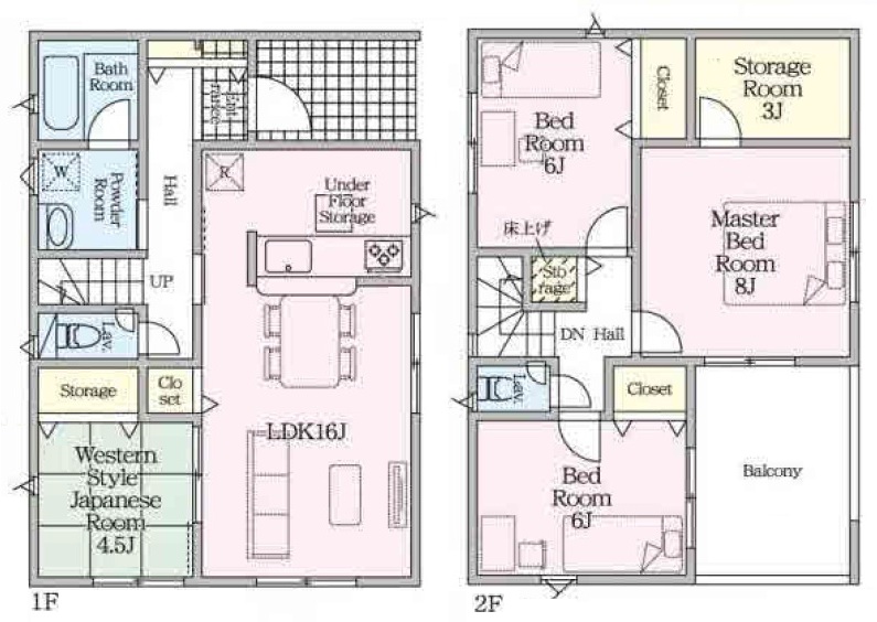 構造 木造軸組構法(在来工法) 階建て 2階建て 間取り詳細 洋3・和1・LDK1