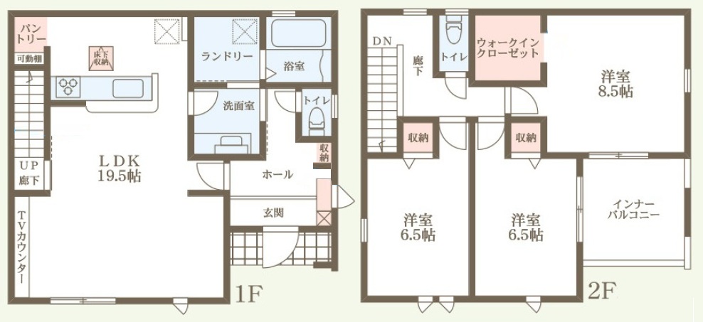 構造 木造軸組構法(在来工法) 階建て 2階建て 間取り詳細 洋3・LDK1