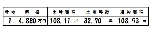 大和郡山市柳2丁目 108.11㎡/32.70坪 1 108.93㎡ R8.6完成予定 4,880万円